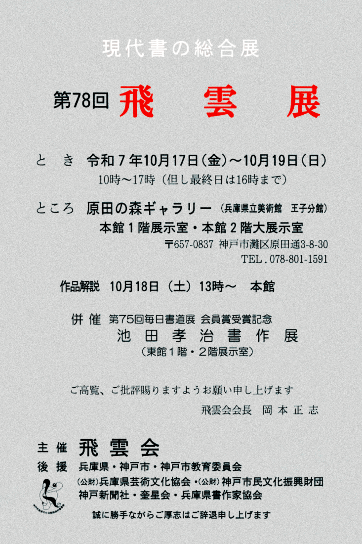 現代書の総合展 第78回「飛雲展」を以下の日程で開催いたします。