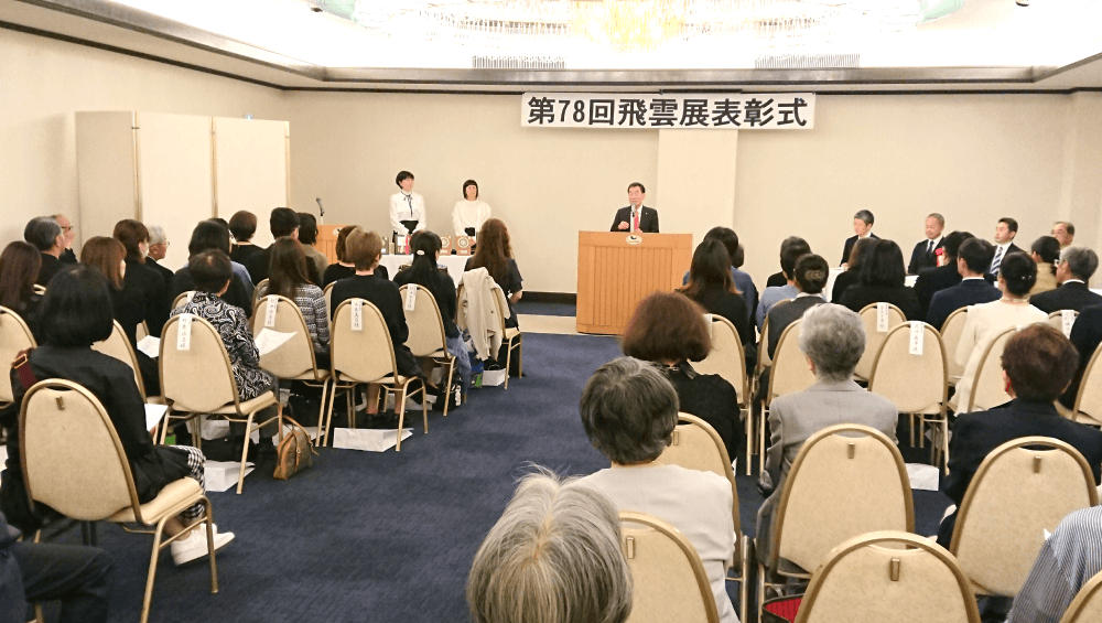 表彰式では兵庫県芸術文化課・神戸市文化交流課の祝辞を受け、後援五団体代表から寄託賞が授与された。受賞者それぞれに賞状が授与され喜びを胸に一層の躍進へ決意を固める場となった。